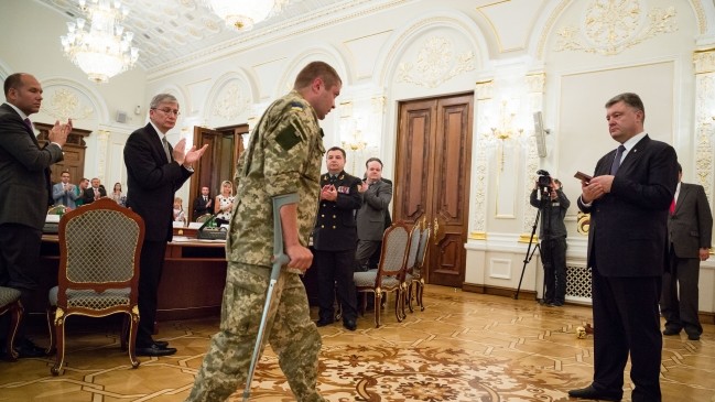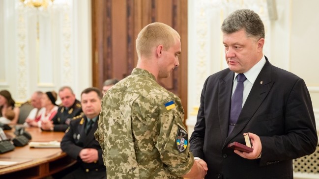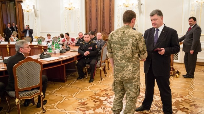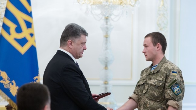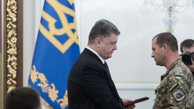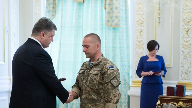 Президент України Петро Порошенко вручив державні нагороди українським військовим, які захищали Донецький аеропорт.