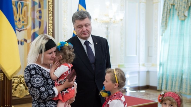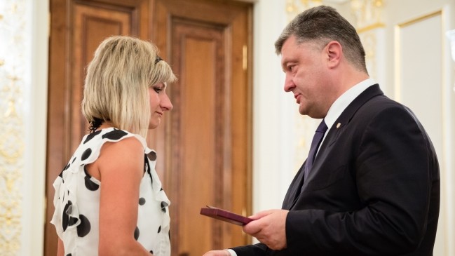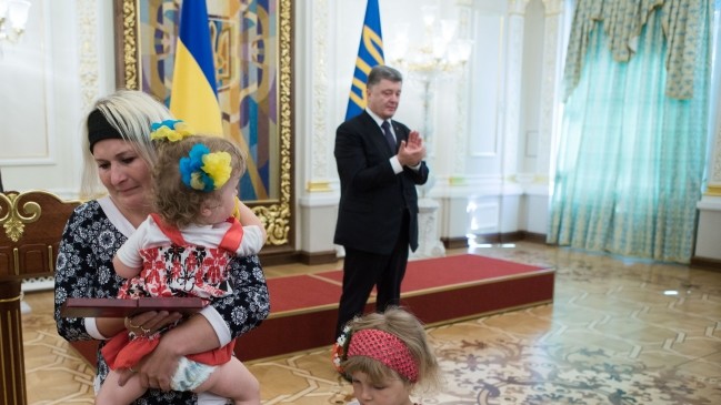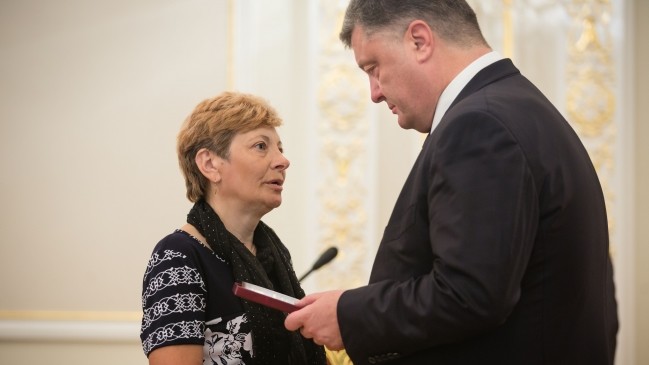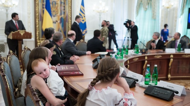 Як повідомляє прес-служба глави держави, серед нагороджених - "кіборги", батьки та дружини загиблих героїв, а також сім'я загиблого старшого лейтенанта Івана Зубкова, який, незважаючи на важке поранення, не залишив поле бою і до останнього продовжував боротьбу з ворогом.