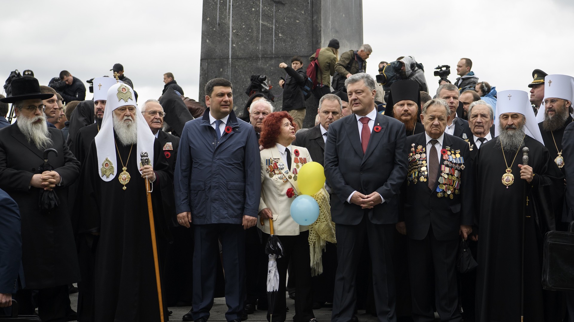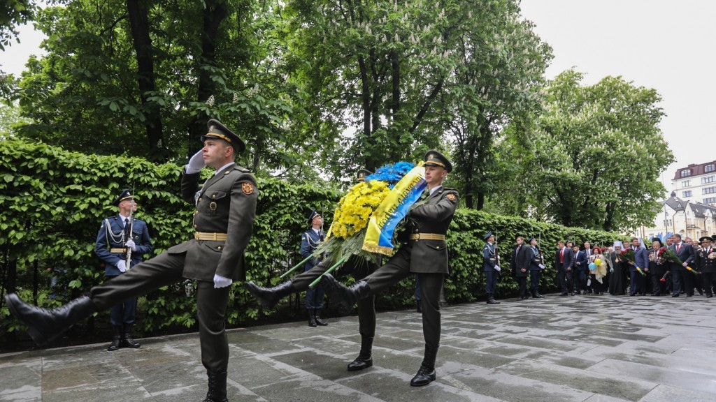 Президент України Петро Порошенко у День перемоги над нацизмом взяв участь у церемонії вшанування пам'яті загиблих з нагоди 72-ї річниці Перемоги у Другій світовій війні. Урочиста хода на чолі з Главою держави пройшла Алеєю Воїнської Слави до могили Невідомого солдата. Президент поклав квіти до пам'ятника.