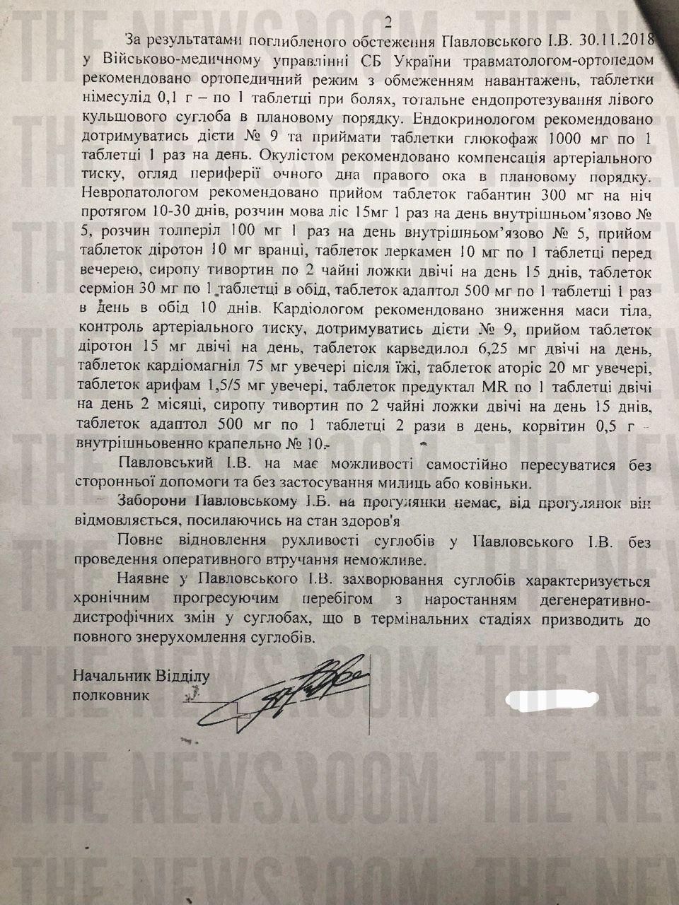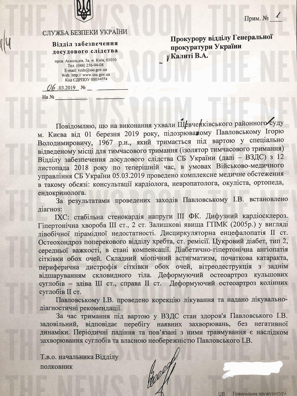 Також на каналі опублікували документи, що підтверджують поганий стан здоров'я Ігоря Павловського.