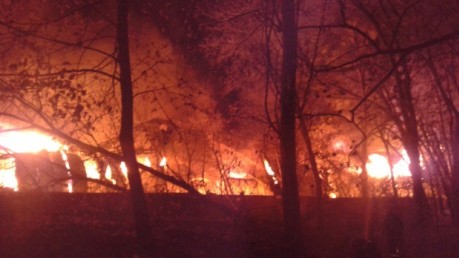 В Державній службі з надзвичайних ситуацій підтвердили, що вогнем охоплено три ангари кіностудії.
