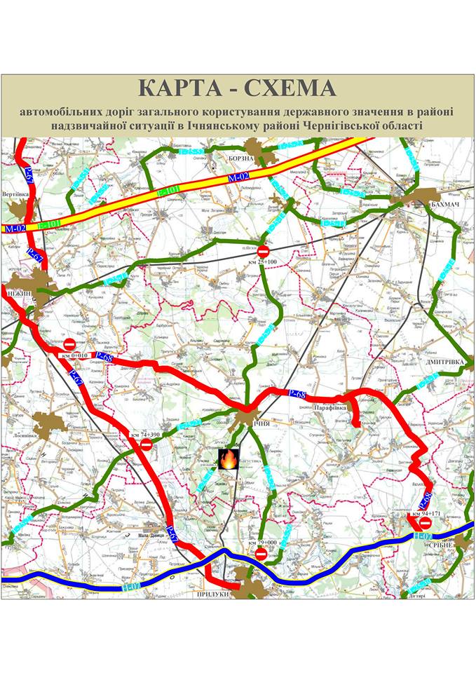 Чернігівський облавтодор опублікував схему об'їзду зони надзвичайної ситуації