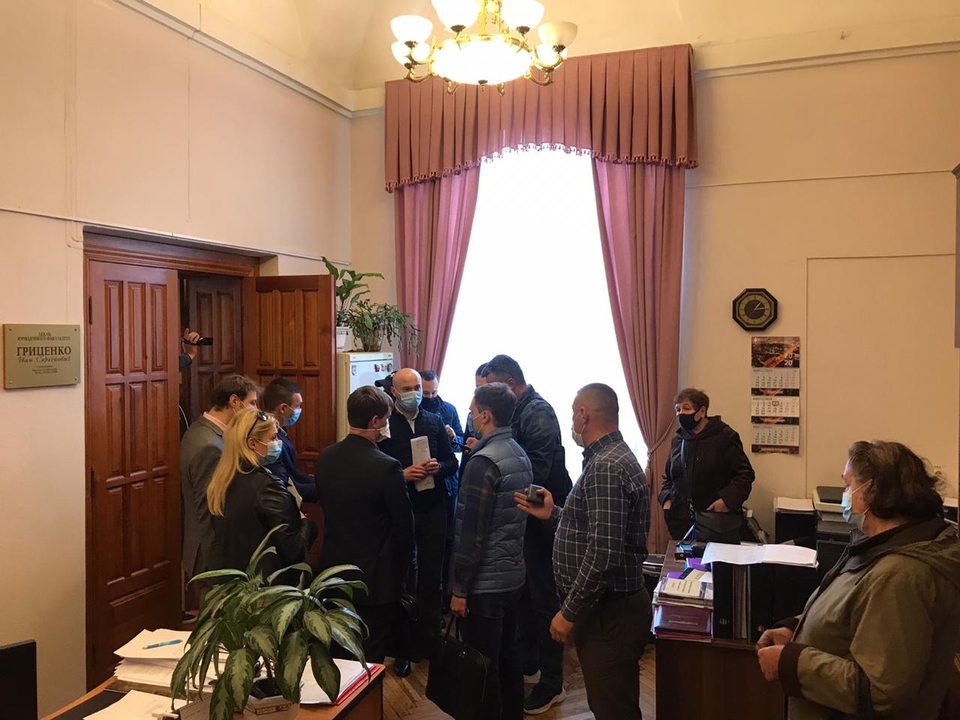 На світлинах агентства видно, що слідчі діі проводилися, зокрема, у кабінеті декана юридичного факультету КНУ Івана Гриценка.