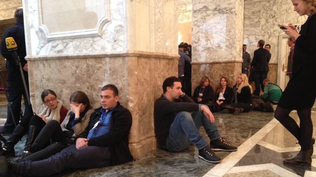 В коридорах Палацу Незалежності журналісти сиділи на мармуровій підлозі, деяким пощастило поспати в кріслах, делегати дрімали на диванах в коридорах.