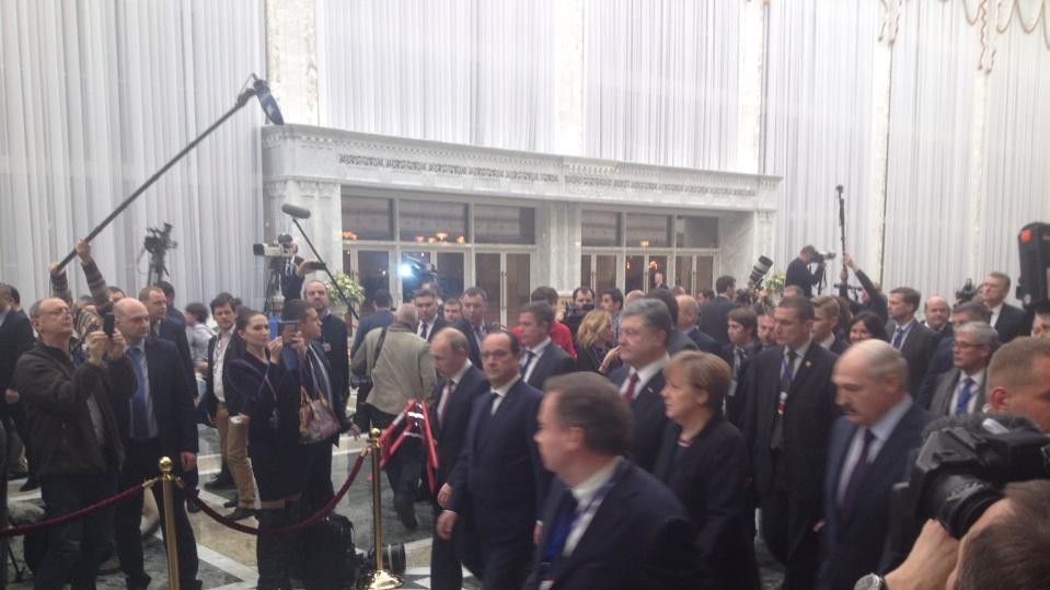 Переговори в Мінську тривали понад 13 годин. У них брали участь Петро Порошенко, Володимир Путін, Ангела Меркель і Франсуа Олланд. На зустріч глав держав приїхало близько 500 журналістів. Крім того, в Мінську знаходяться представники делегацій різних країн.