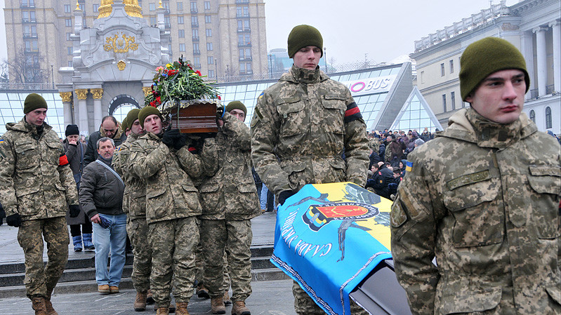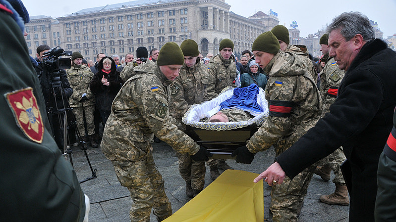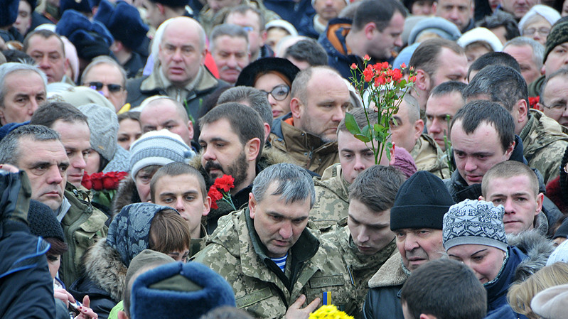 У середу, 1 лютого, в Києві відбулася церемонія прощання з бійцями Збройних сил України, які загинули в боях під Авдіївкою Донецької області. На Майдан Незалежності прийшли сотні людей, щоб вшанувати сімох військовослужбовців 72-ї окремої механізованої бригади.