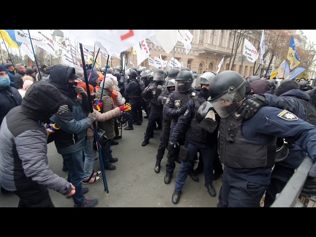 Учасники протесту біля Верховної Ради блокували входи до парламенту та не пускали до будівлі народних депутатів. У результаті під парламентом сталася сутичка, а правоохоронці затримали одного протестувальника, повідомила пресслужба Нацполіції Києва.