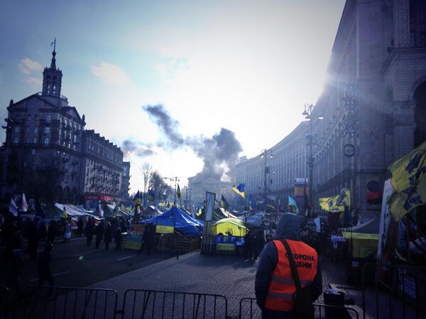"Учасники акції протесту намагаються захопити будівлю Київської міської адміністрації, палять гуму, закидають будівлю коктейлями Молотова", - повідомили у прес-службі київської міліції.