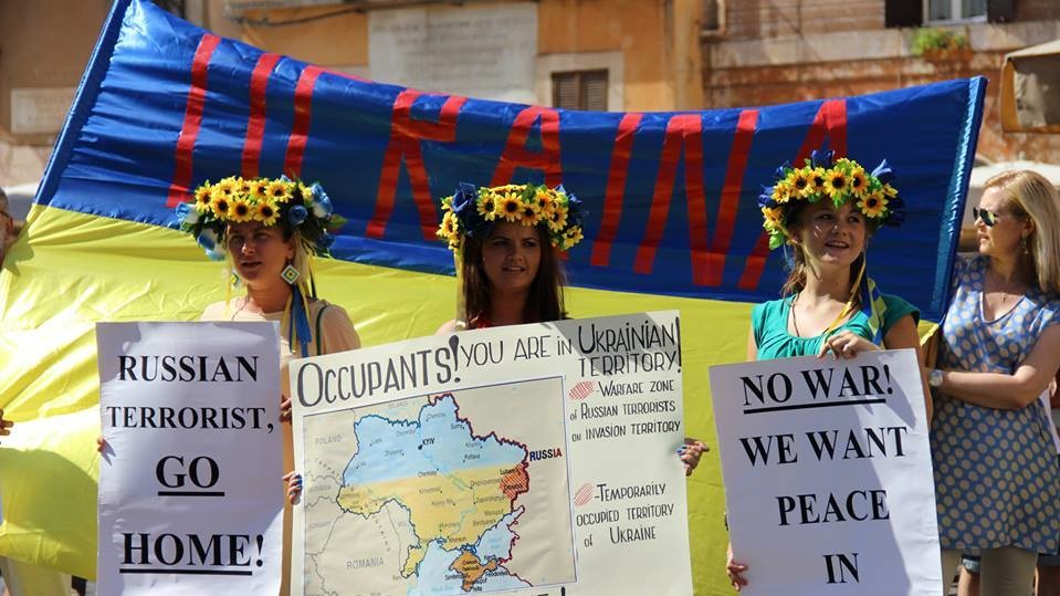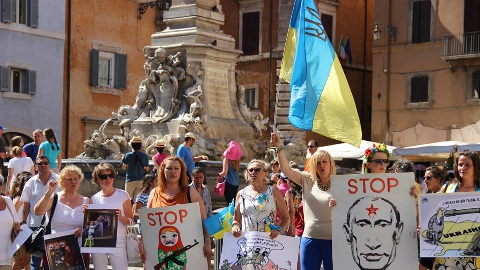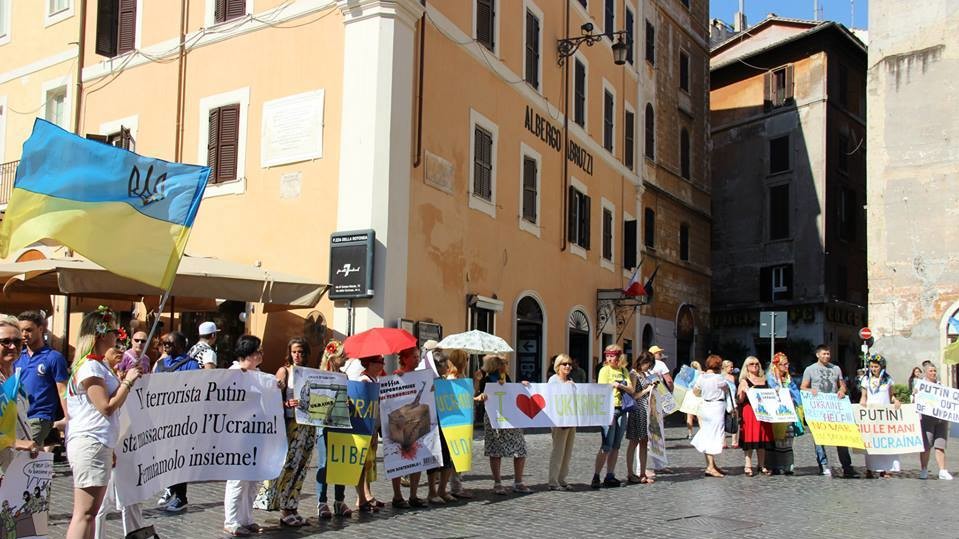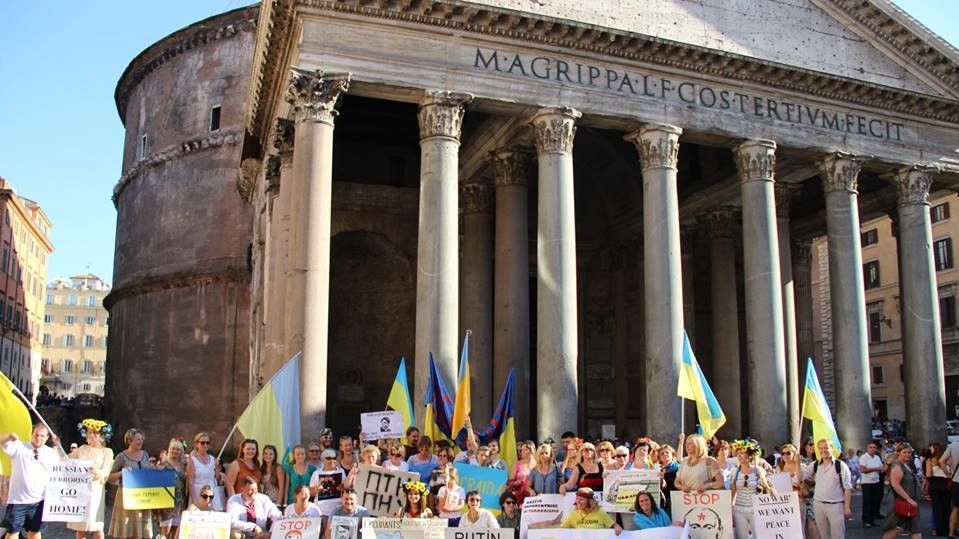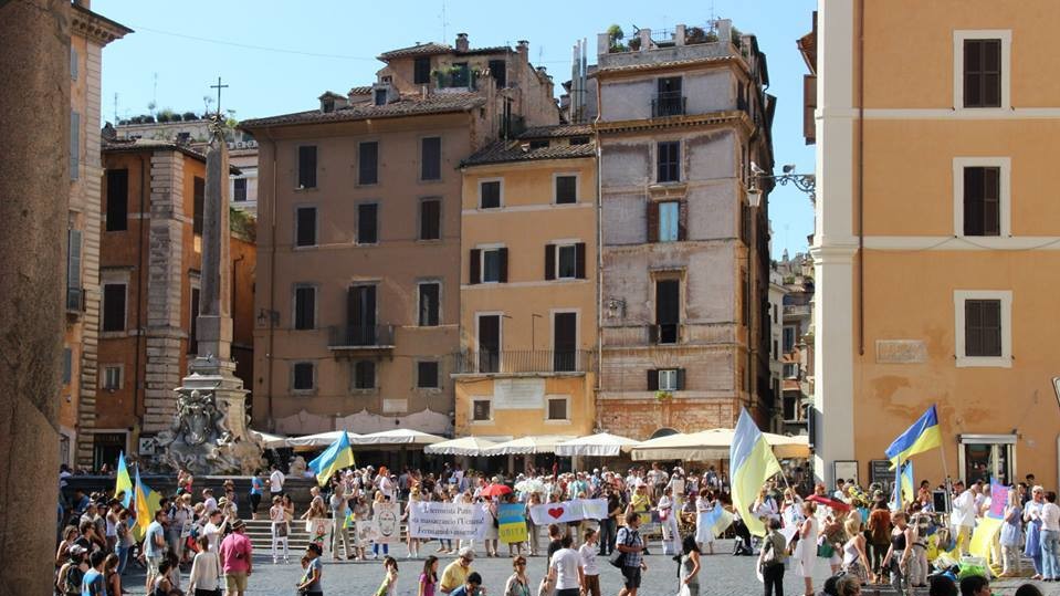 Українська громада у Римі провела мітинг проти російської агресії і кремлівської пропаганди. Акція відбулася на площі біля Пантеону, яка завжди переповнена туристами.