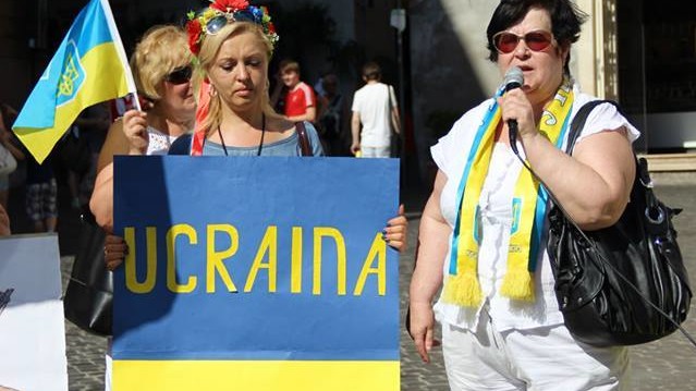 Протягом двогодинного мітингу під спекотним римським сонцем демонстранти зібрали 645 євро на допомогу переселенцям в Україні. !zn