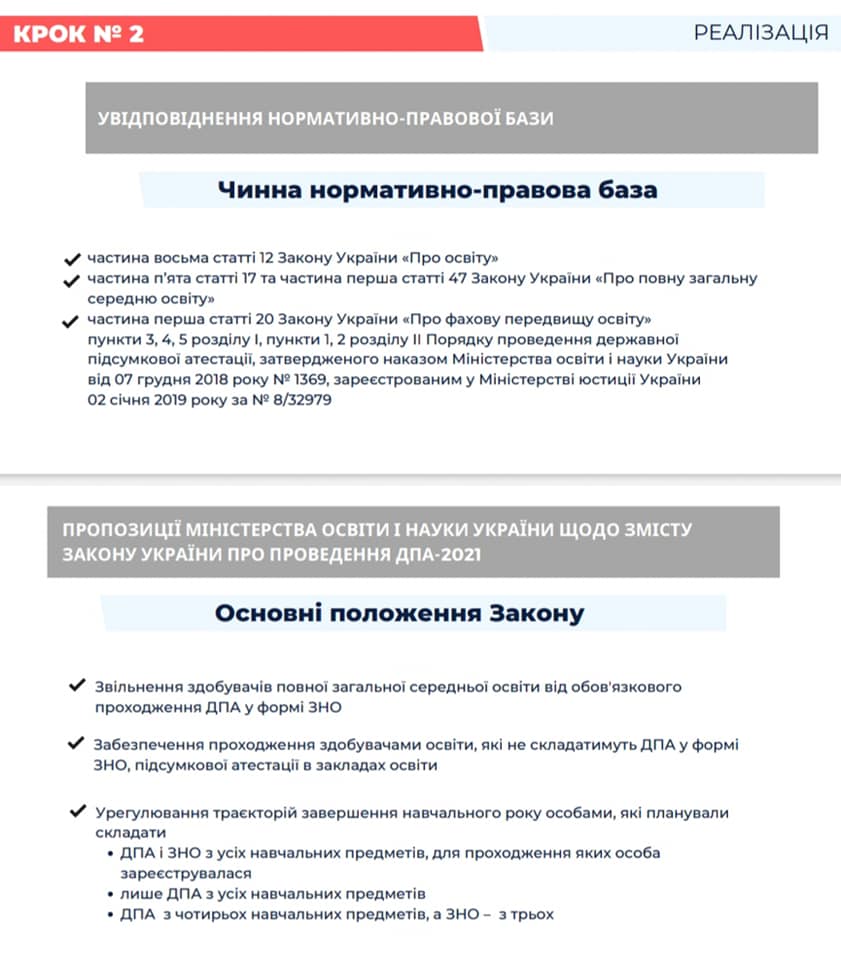 «Законопроект передбачає надання учням (студентам), які завершують здобуття повної загальної середньої освіти, права вибору виду оцінювання їхніх результатів навчання – шляхом річного оцінювання, або державної підсумкової атестації, або державної підсумкової атестації у формі зовнішнього незалежного оцінювання», - йдеться у пояснювальній записці.