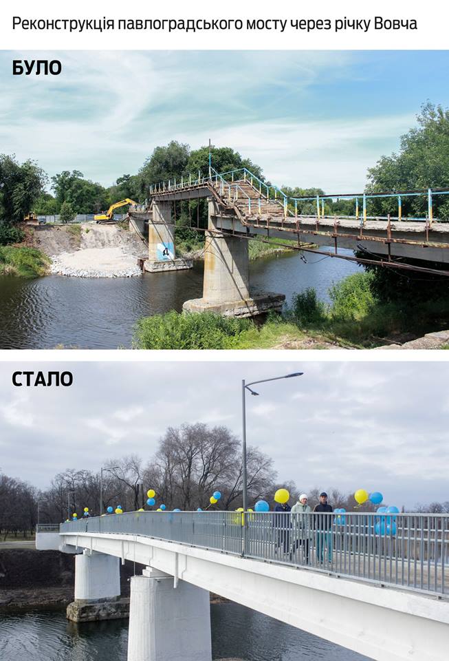 "Було - стало: один з мостів через річку Вовча в Павлограді, який ми реконструювали в минулому році. Не знаю що там не заладилося у міцних господарників, довели за час свого "господарювання" міст до стану нестояння за часів стабільності, але реконструювали його вже ми, в минулому році. Децентралізований технократизм команди Порошенка в дії", - зазначив він.