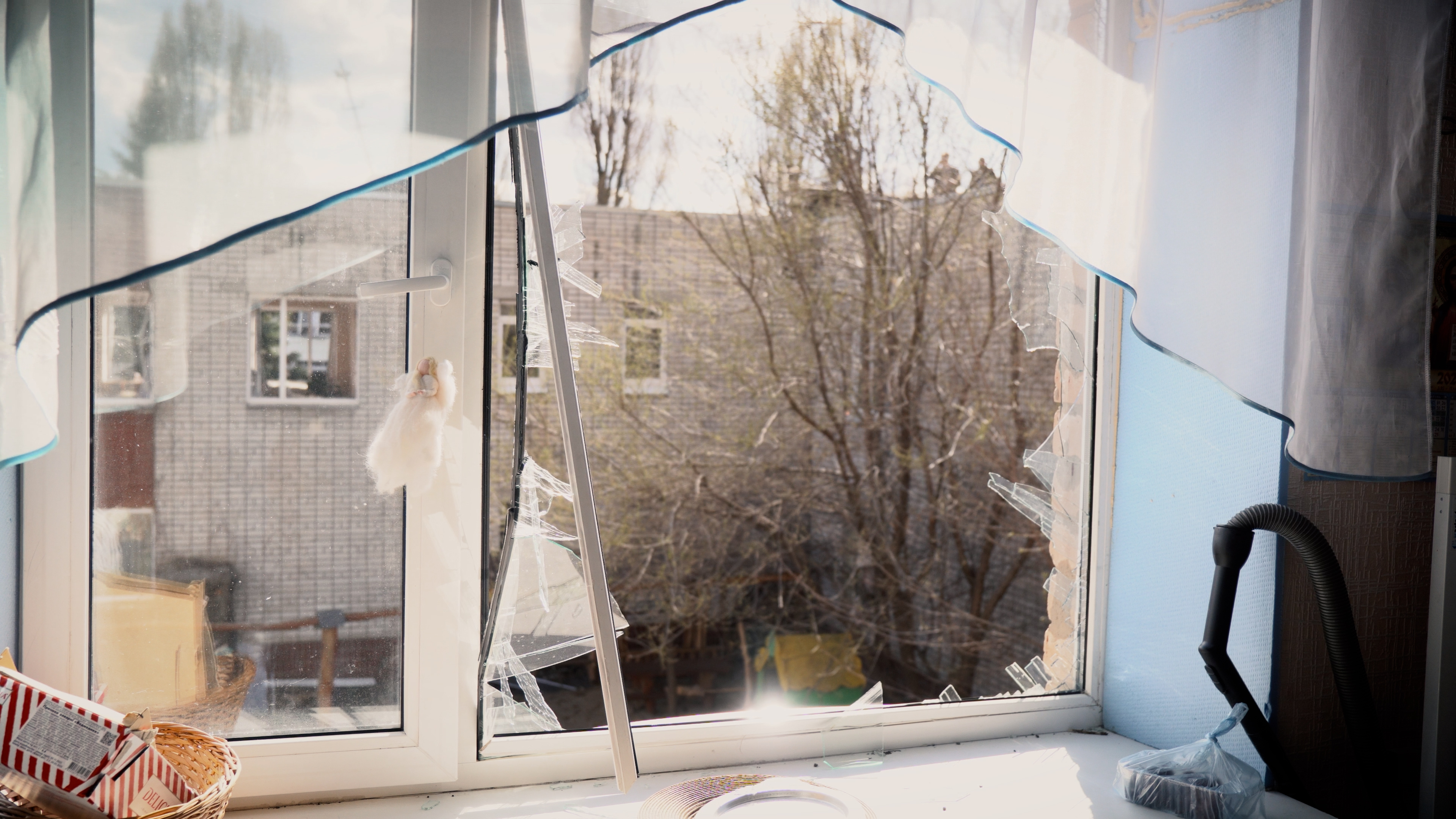 Вітер розхитує саморобного білого янгола на вікні. Колись діти зробили його разом із вихователькою. Янгол залишився неушкодженим — висить на віконній ручці. Інша половина вікна розбита, рама вивернута.
