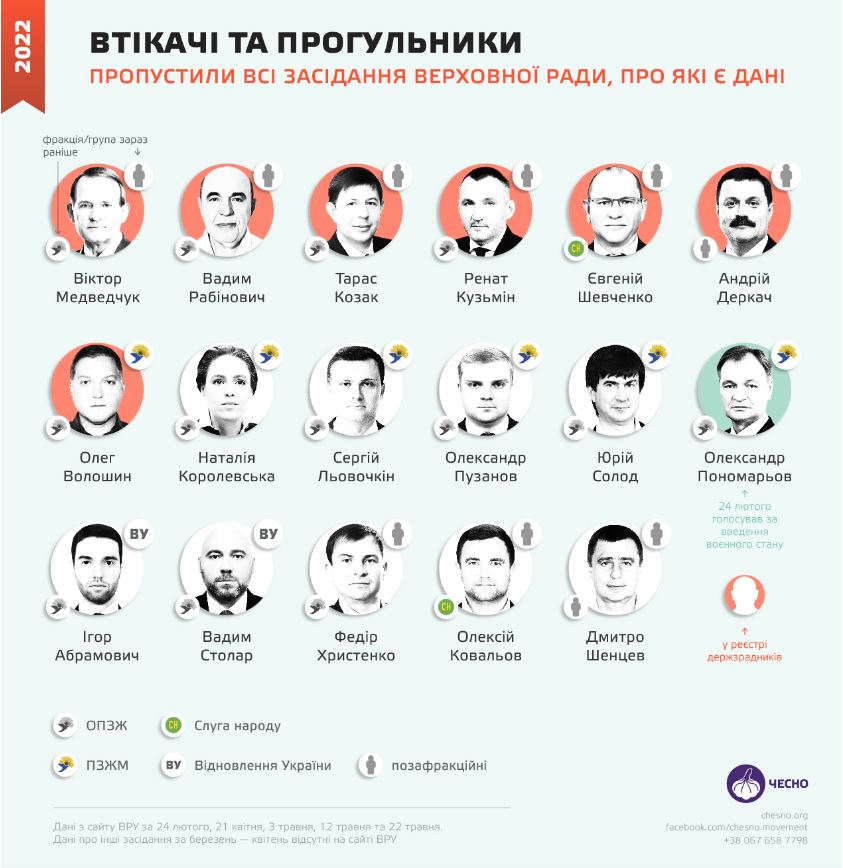 В основному йдеться про представників колишньої фракції ОПЗЖ, позафракційних та екснардепів від "Слуги народу". Частина цих депутатів має підозри в державній зраді.