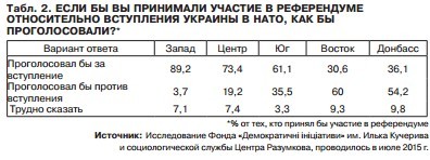 Особливо примітно, що кардинально змінилася картина в Центрі, де 73% підтримали б вступ в альянс.