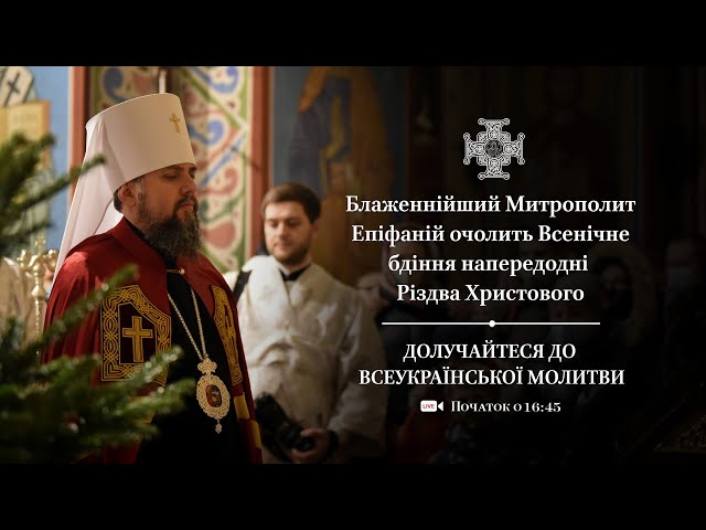 Увечері 24 січня в православних храмах пройде різдвяне богослужіння. Всенічне бдіння напередодні Різдва Христового у Свято-Михайлівському Золотоверхому соборі в Києві очолить митрополит Епіфаній. Богослужіння почнеться 24 грудня о 16:45.