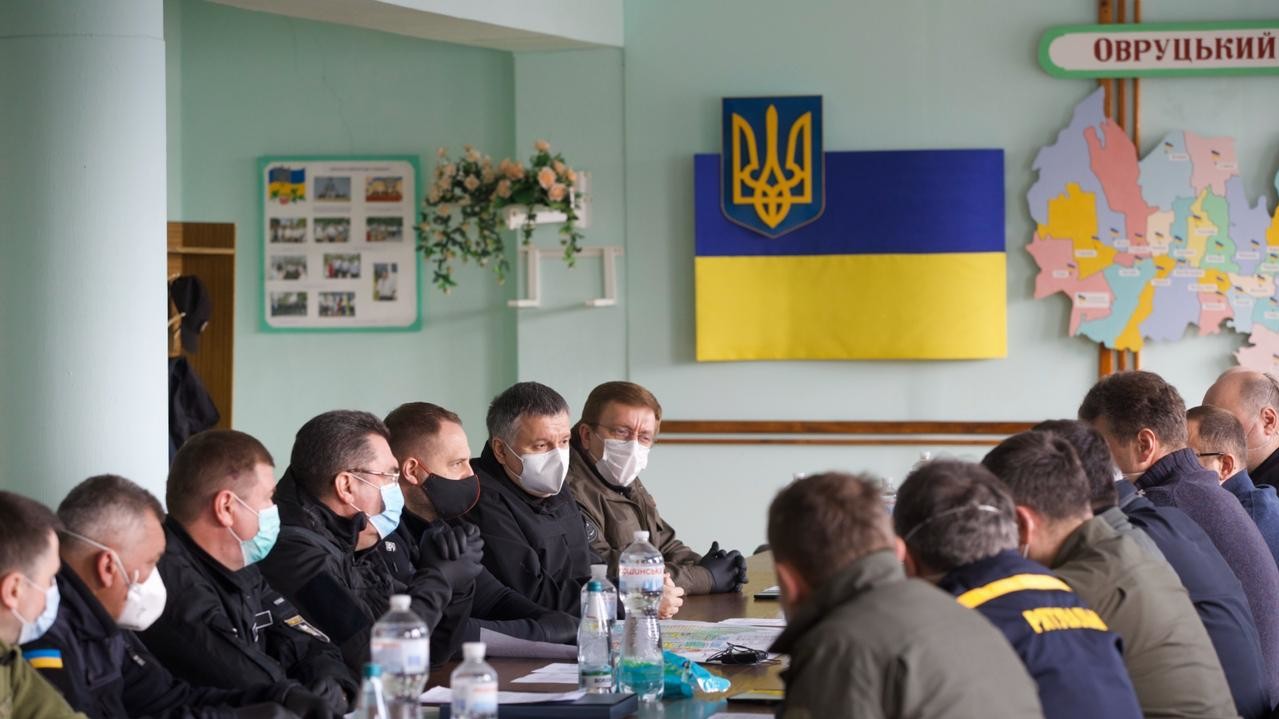 В Овручі з секретарем РНБОУ О. Даніловим,керівником ВП А. Єрмаком заслухали представників ОДА,ДСНС,НПУ, Держлісагентства щодо пожеж у регіоні.Здійснили повітряний моніторинг над районом пожежі. Рятувальники,авіація,50 од.тих. працюють 24/7.Врятовано 4 села.За 3-4 дні подолаємо! pic.twitter.com/SSCC5iFEWt