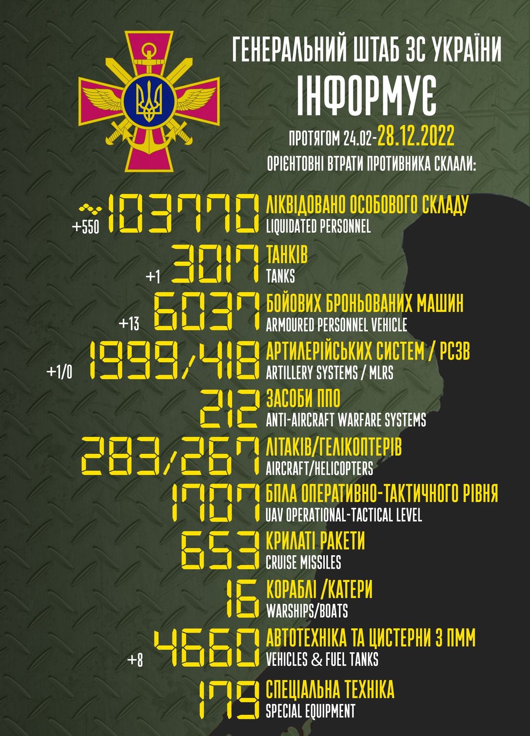 Загальні втрати ворога станом на 28 грудня: