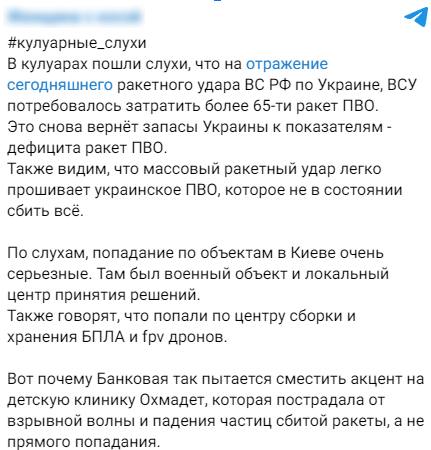 Також почали розганяти і російську версію щодо неякісної роботи протиповітряної оборони, мовляв саме ППО вдарили по лікарні.