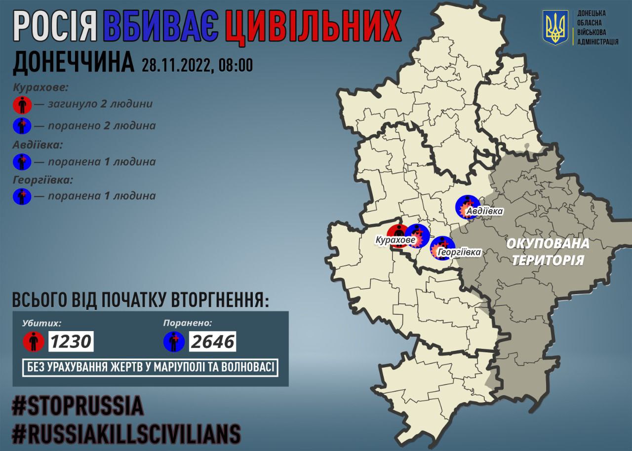 Минулої доби російські вбивці забрали життя двох мирних жителів Донецької області, повідомив голова ОВА Павло Кириленко. Зокрема, жертвами окупантів стали мешканці Курахового.