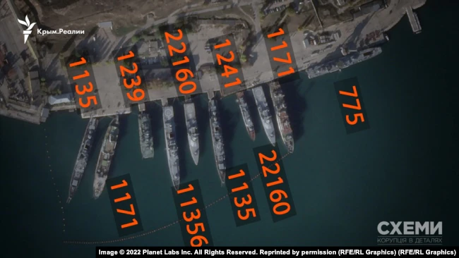 «Один із головних військових об’єктів в Криму – Севастопольський порт, куди незадовго до повномасштабного вторгнення Росія стягнула численні кораблі не тільки Чорноморського, але й Балтійського та Північного флотів», – зазначили журналісти.