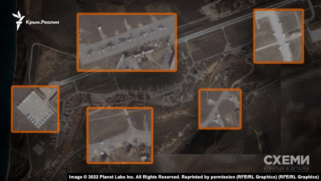«Радіо Свобода» також вивчила супутникові знімки військових баз та позицій російських засобів протиповітряної оборони й кораблів Чорноморського флоту РФ на території Криму.