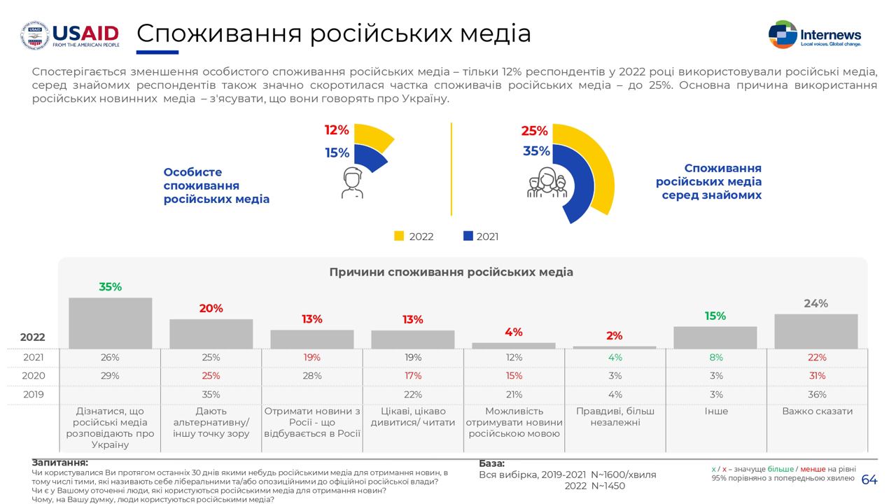 Там сказано, що громадяни України новини з російських ЗМІ сприймають виключно як пропаганду. Також бувають випадки, коли респондентам потрібно порівняти висвітлення тої чи іншої теми в українських ЗМІ та у російських. Ще одна причина — для веселощів: «посміятися над тим, що вони про нас кажуть».