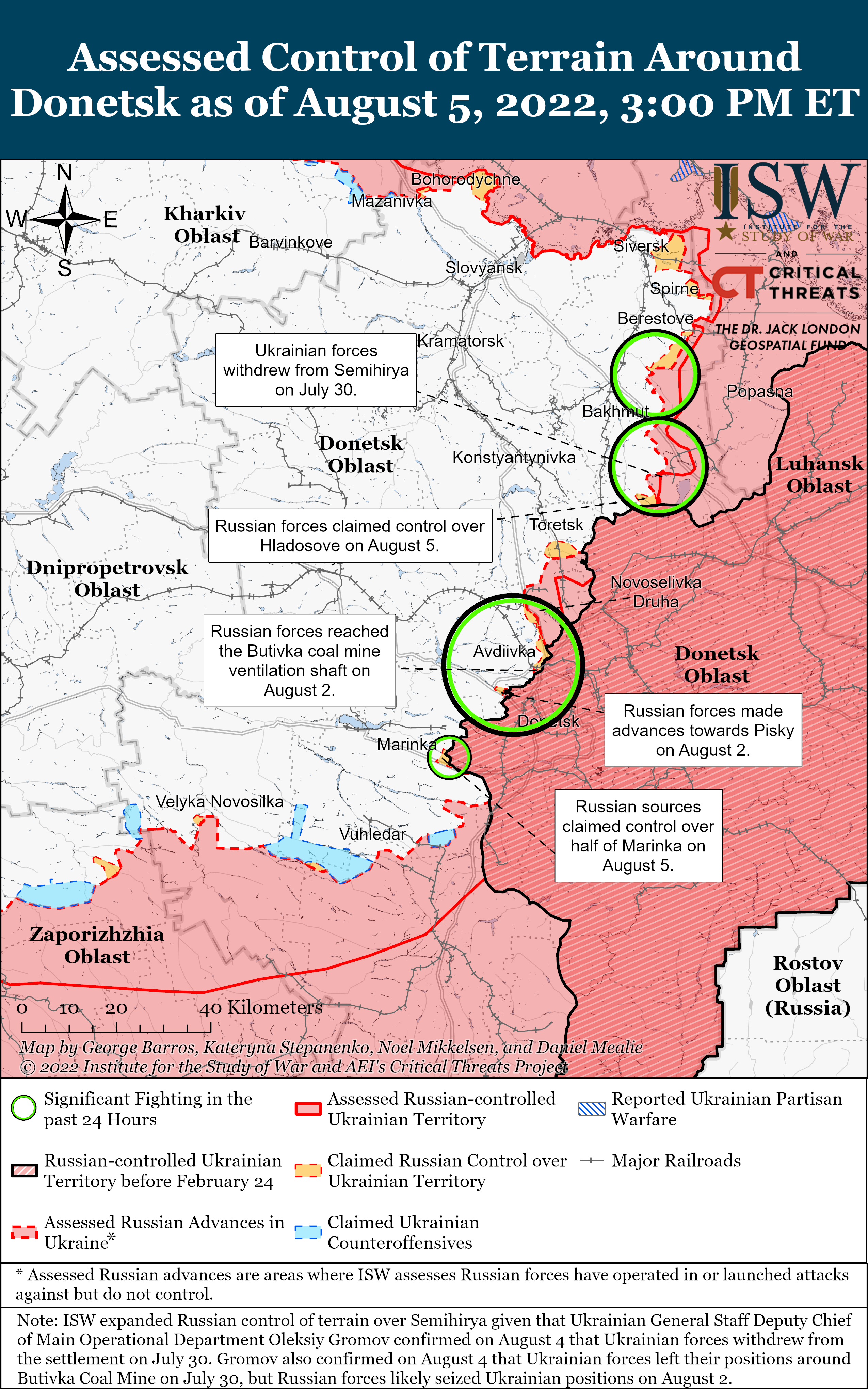 Після оголошеної у червні «оперативної паузи» окупаційні війська не змогли відновити наступальний темп для захоплення Донеччини та Луганщини. Аналітики припускають, що загарбники ще якийсь час просуватимуться у Донецькій області, однак захопити великі міста не зможуть, і, зрештою, наступ колапсує.