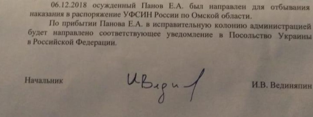 "У документі йдеться, що після прибуття Є. Панова до колонії адміністрацією буде направлено відповідне повідомлення в Посольство України в РФ. На сьогодні таке повідомлення ще не надійшло", - додають правозахисники.
