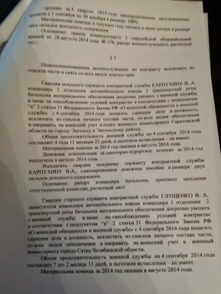 Вона посилається на документи, отримані від військових, в яких загиблих в Україні 17 вересня військовослужбовців "звільняють" заднім числом - 4 вересня.