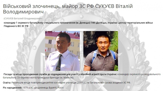 Наголошується, що раніше Сукуєв був командиром окремого розвідувального батальйону 33 окремої мотострілкової бригади ЗС РФ (р. Майкоп).