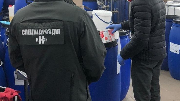 "Під час санкціонованих слідчих дій за місцями виробництва фальсифікату у Житомирі та на Київщині правоохоронці виявили майже 70 тисяч літрів спиртовмісної речовини "етанол", приблизно 10,5 тисячі літрів готової фальсифікованої продукції, хімічні сполуки, порожню тару, наклейки торгових марок виробників та обладнання для виготовлення контрафактних дезінфікуючих засобів", - відзвітували правоохоронці.