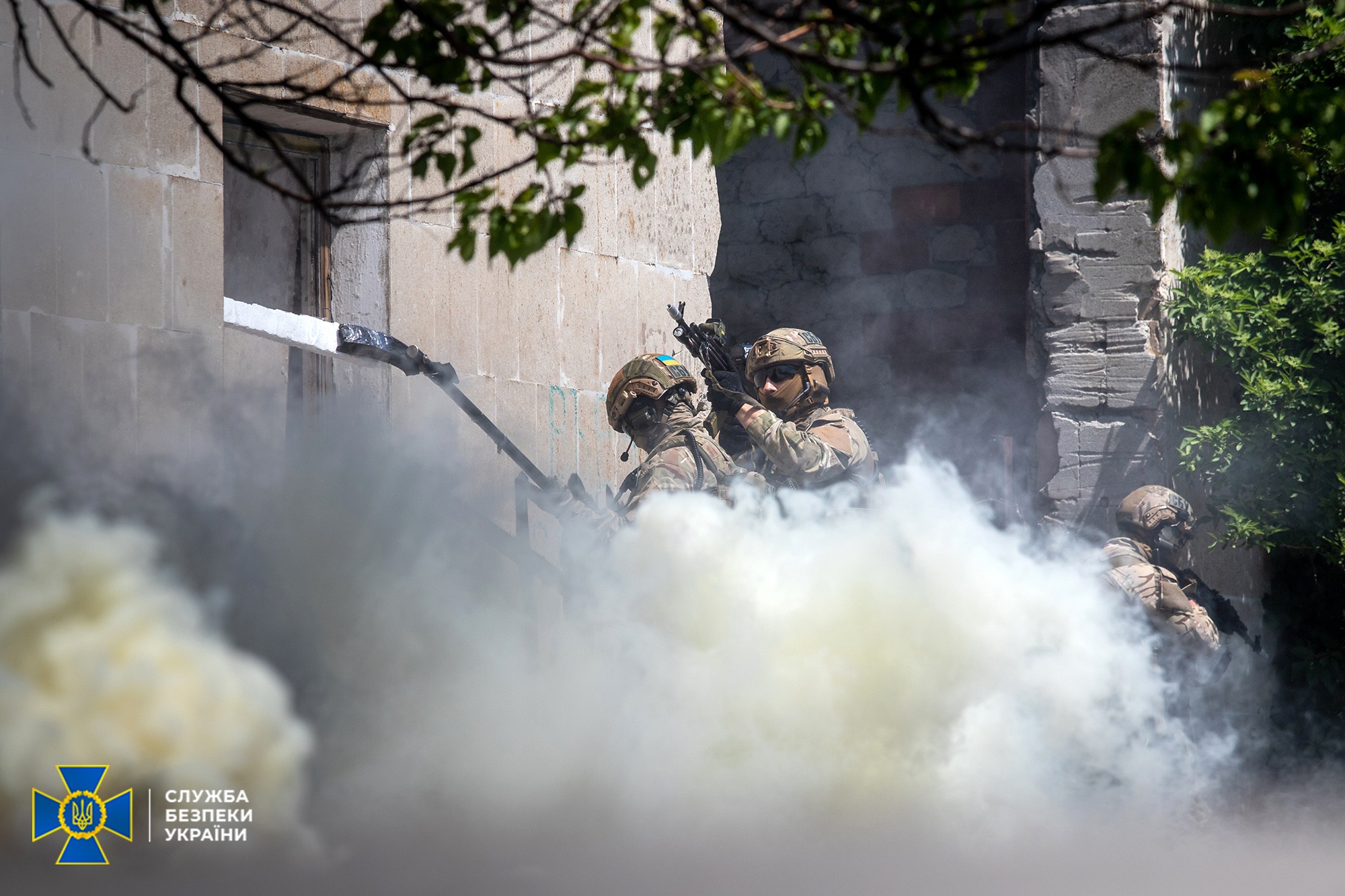 У районі проведення Операції об'єднаних сил Служба безпеки України провела дводенні антитерористичні тактико-спеціальні навчання в Донецькій та Луганській областях, завершальна фаза яких відбулась в прифронтовій Авдіївці, звідки до позицій підтримуваних Росією збройних угруповань менше кілометра.