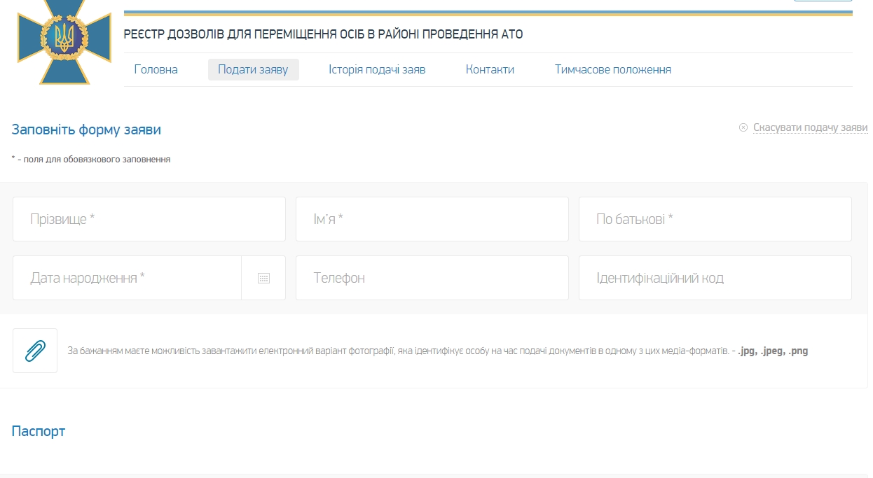 Для подачі заявки на отримання перепустки спочатку необхідно зареєструватися на сайті, потім вибрати координаційний пункт, через який планується проїзд, і заповнити поля з особистими даними: ім'я, дата народження, телефон та ідентифікаційний код (за бажанням), дані паспорта, адреса фактичного проживання та реєстрації, вказати маршрут і мета проїзду. Також пропонується завантажити електронний формат фотографії.