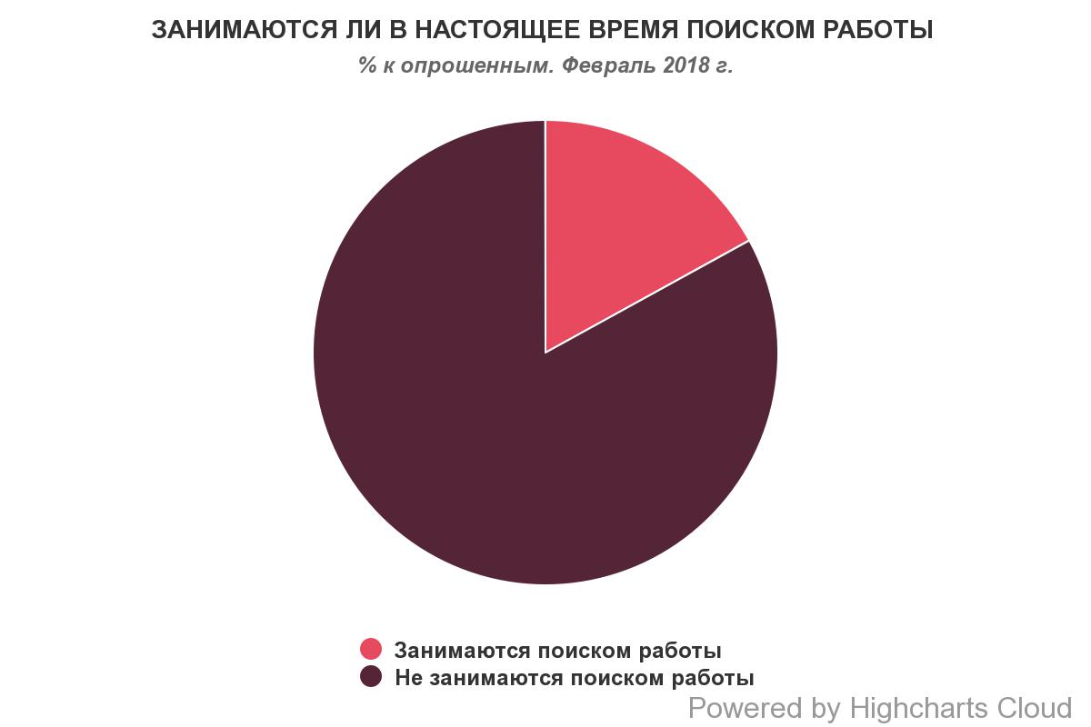 На даний час переважна більшість як працюючих, так і не працюючих громадян України (83%) не займаються пошуком роботи, тоді як шукають роботу 17% опитаних, свідчать дані опитування Research & Branding Group.