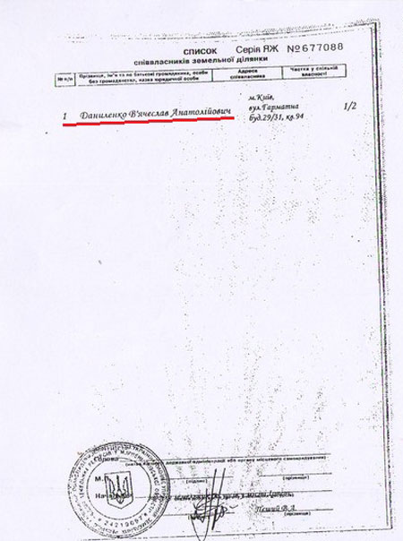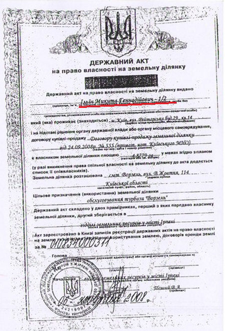 Син заступника генпрокурора Анатолія Даниленка є співвласником майже 5 га лісу по вул.В.Жовтня,114 у селищі Ворзель Київської області – про це свідчить держакт на право власності на земельну ділянку.
