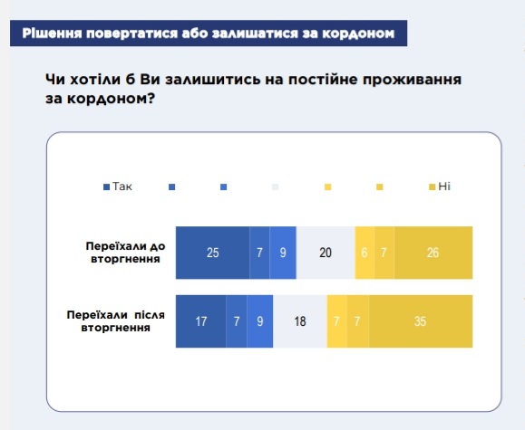 "Насправді, можливість залишитися залежить не лише від бажань, а від інших обставин: можливостей, наявності роботи, дозволу на проживання, можливості навчатися дітям, зміни особистих обставин. Тому не можна сказати, що саме така кількість наших громадян залишиться або повернеться в Україну", - йдеться в повідомленні.
