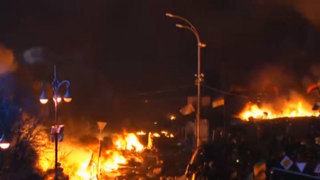 В ході протистояння в центрі почалися численні пожежі. Майданівці спалили БТР, які силовики використовували для штурму барикад. Вогонь у Будинку профспілок забрав життя частини людей, що знаходилися в ньому.