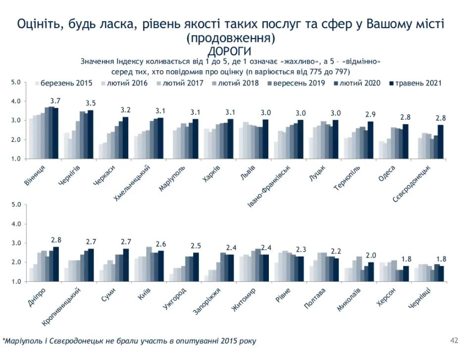 Зокрема, жителі різних міст оцінюють дороги таким чином: