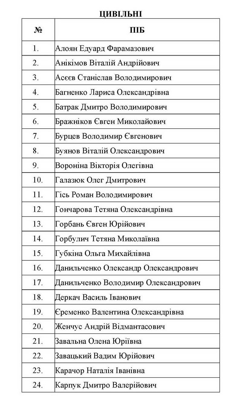 Служба безпеки оприлюднила повний список українців, яких звільнили в рамках обміну між Україною і ОРДЛО. Загалом, в Україну повернулися 76 осіб.