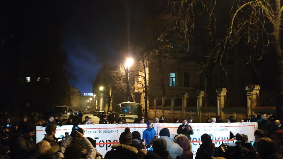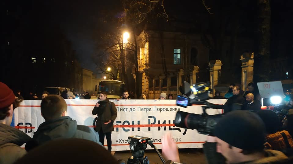 Близько 19:30 понеділка, 4 лютого, кілька десятків людей зібралися на Банковій. Вони принесли з собою банери з написами "Вибачте, так а хто замовив Гандзюк?", запалили лампадки і фаєри. Під час пікету АП було озвучено вимогу виключити з "Блоку Петра Порошенка" і відсторонити від посад голову Херсонської облдержадміністрації Андрія Гордєєва і його заступника Євгена Рищука. Їхні закреслені імена були розміщені на банерах, адресованих президентові Петру Порошенку.