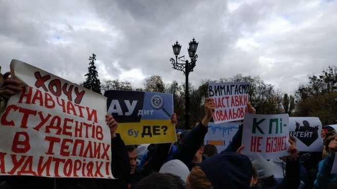 У Києві студенти Національного технічного університету "Київський політехнічний інститут ім. Сікорського" під стінами головного корпусу вимагали відставки ректора університету та покращення умов навчання та проживання у студентських гуртожитках. А спонукало їх вийти на протест опубліковане напередодні розслідування програми "Центр розслідувань України", згідно з яким ректор вузу Михайло Згуровський не вказав у своїх деклараціях спільний з сином будівельний бізнес у Чорногорії та кошти від продажу нерухомості в США.