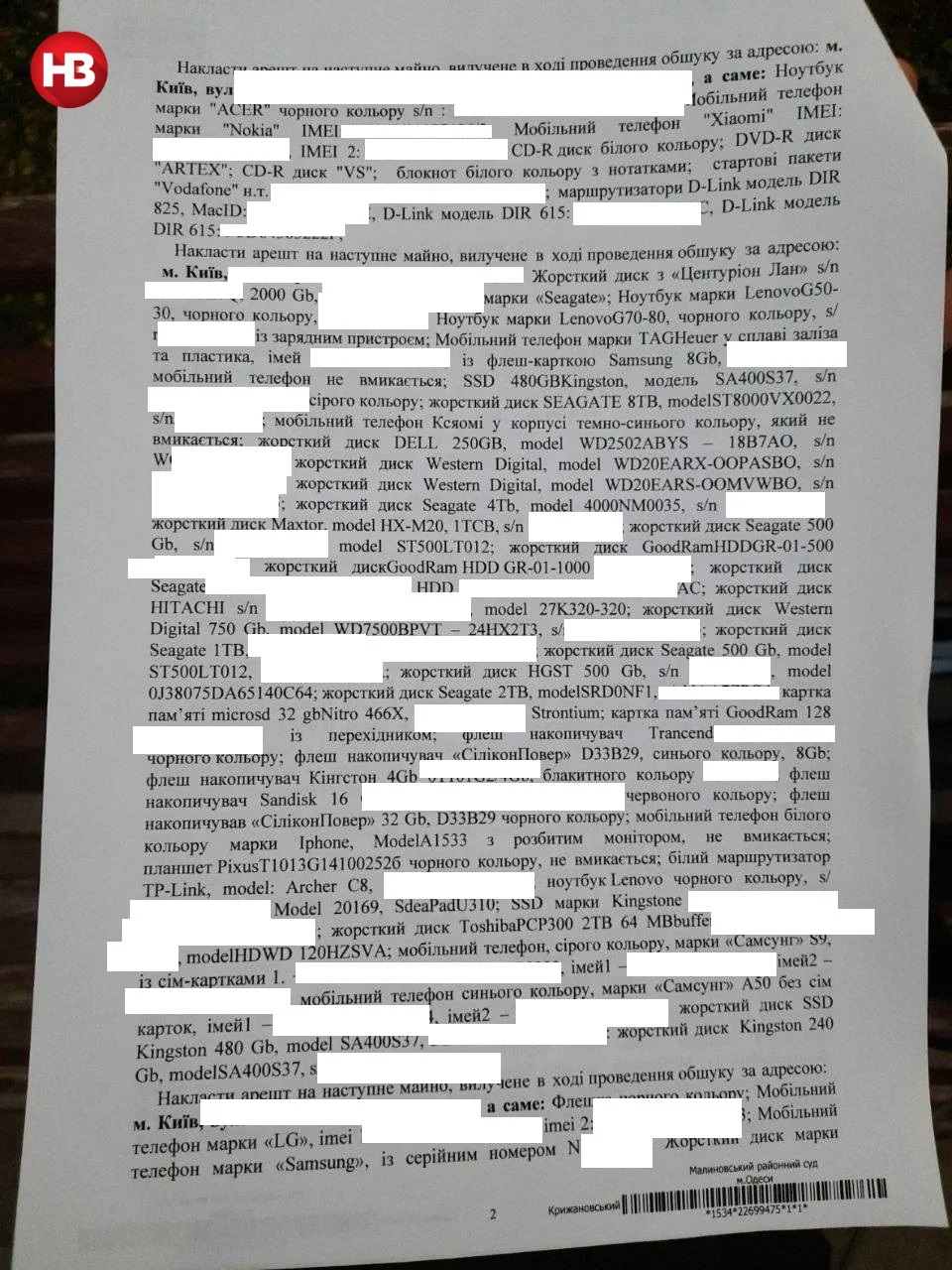 Серед арештованого майна – ноутбуки, мобільні телефони, планшети, жорсткі диски, флеш-накопичувачі і Wi-Fi роутери.