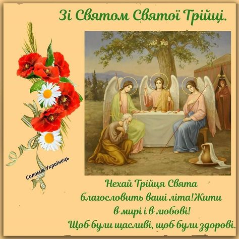 Вітаю зі святом святої Трійці! Бажаю, щоб небесні Охоронці завжди були за спиною. Щоб прикрощі, печалі й негаразди розсіялися і поступилися місцем миру, радості і спокою. Нехай віра в найкраще разом зі свіжим літнім повітрям оселиться у вашому будинку. Добра вам і благополуччя!