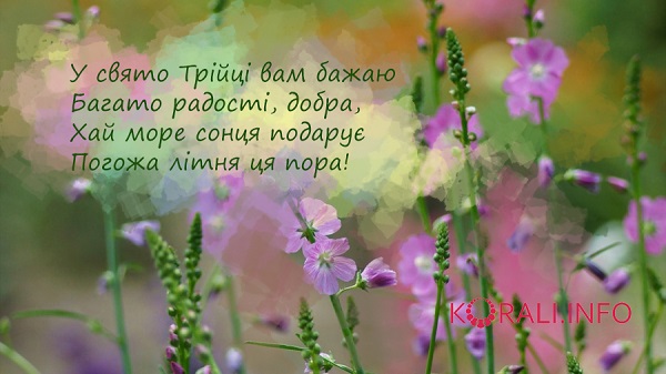 Зі святом Трійці вас! Нехай урочистий церковний дзвін наповнить душу натхненням і радістю, зміцнить віру і подарує надію, зцілить хвороби й нагородить терпінням, мудрістю, життєвими благами та щасливими миттєвостями.