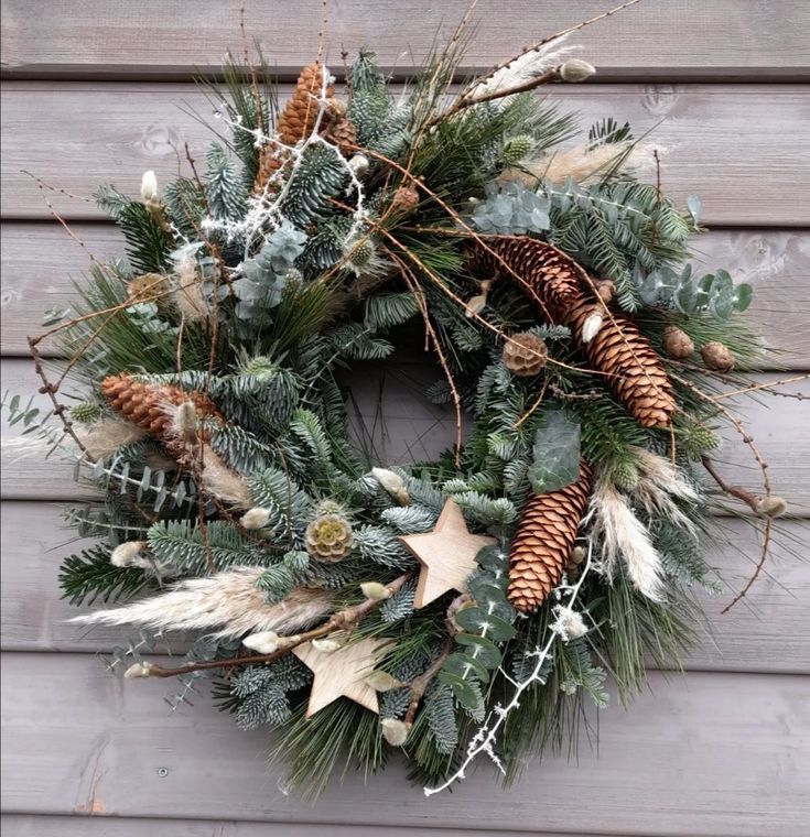 Найпростішим способом прикрасити дім стане вінок з ялинкових гілочок. Робити такий вінок досить просто, а якщо ще й шишки в лісі зібрати і пофарбувати білим акрилом — буде просто казково красиво.