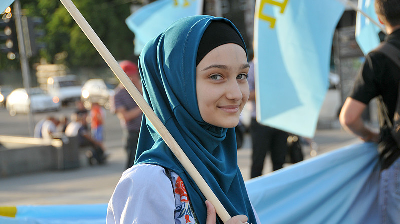 Прапор кримських татар – це полотно небесного кольору із зображеним на ньому тамгою золотого кольору – символом ханської династії Гіреїв, яка правила Кримським ханством у 15-18 століттях.