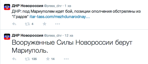 При цьому показово, що повідомлення про анонсування штурму Маріуполя було опубліковано перед повідомленням про нібито обстрілі українськими військами позицій "ополчення".