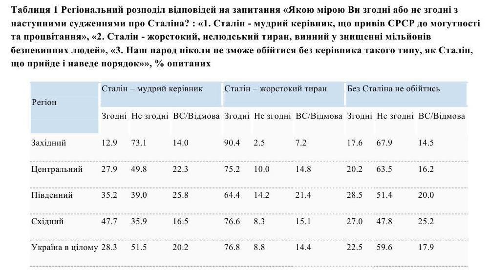Серед українців в цілому переважає негативне ставлення до Сталіна – 42% ставиться до нього з ворожістю, страхом чи ненавистю, 30% ставиться байдуже і 14% - позитивно (з повагою, симпатією чи захопленням), свідчать дані опитування КМІС.