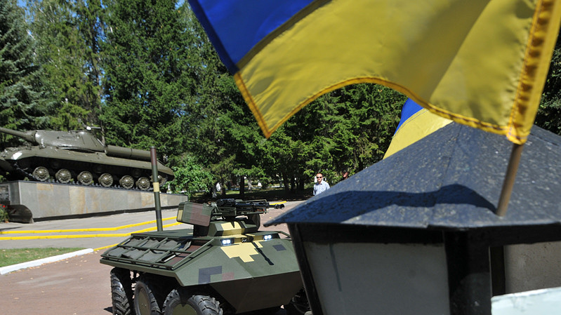 Державний концерн "Укроборонпром" представив Секретарю Ради національної безпеки і оборони України Олександру Турчинову аеродинамічно подібну літаючу модель БПЛА "Горлиця" та зразок безпілотного бронетранспортера "Фантом".